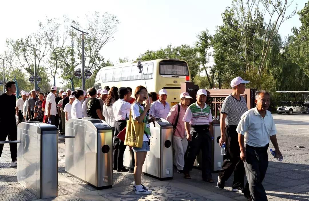 天高云淡,秋風送爽,九月正是登高遠眺好時節(jié)。18日早上8時許,數(shù)十輛懸掛著浙江牌照的大巴車在大洋灣景區(qū)南門停車場一字排開,來自浙江臺州海霞國旅的600余名游客陸續(xù)下車,進入景區(qū)。站在登瀛閣上,瀑布廣場人頭攢動,處處可見白色旅行帽,非常熱鬧。